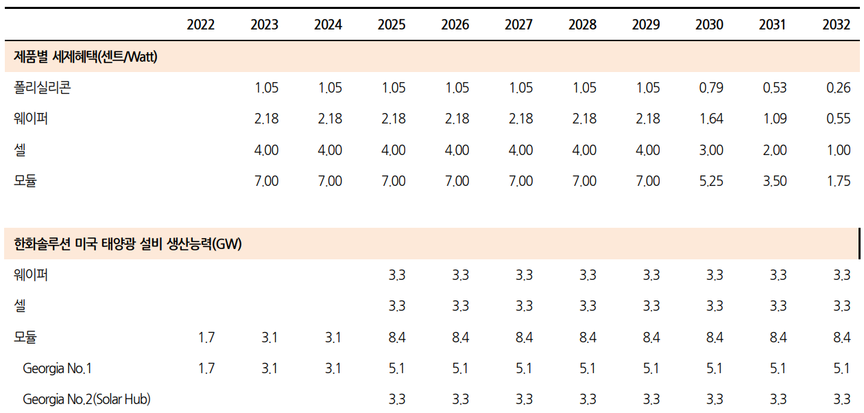 · 미국 IRA 법안 > 한화솔루션 미국 현지 태양광 공장 증설 > 0.07$ per W 세금혜택