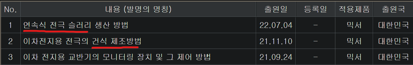 건식전극제조방식이 무서운 것이 만일 성공하게 된다면, 전고체개발까지 가능하게 될 수도 있다는거에요. 전고체는 리튬이온전지의 리튬이온을 옮겨주는 전해액을 대신하게 되는 것인데요. 전해액은 현재까지 가장 알맞은 물질로 알려져있지만, 액체라서 무게의 한계성과 폭발위험성이 있어서 이것을 고체화하는 것이 배터리제조사들의 최대관심사입니다.
