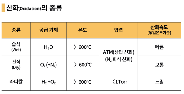 이때 산화막을 생성하는데 3가지 방식이 있어요. 습식(Wet), 건식(Dry), 라디칼(Radical)입니다.
