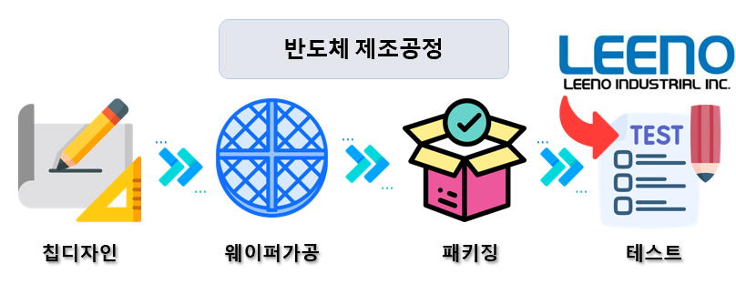 IDM회사들은 워낙 반도체 산업이 빠르게 성장하다보니 모든 공정을 효율적으로 개발시키기가 어려웠어요. 비용도 증가하기 시작하자 IDM업체들은 각 공정별로 외주를 맡기기 시작합니다. 그중 후공정에 속하는 패키징, 테스트 공정을 하는 업체들을 OSAT업체라고 하는데요. OSAT은 Outsourced Semiconductor Assembly & Test의 약자입니다. 말 그대로, 반도체 조립 및 테스트 외부업체인 것이죠. 리노공업은 이 OSAT과정에서 자사의 테스트를 위한 소모품인 'IC Test Socket'과 'Leeno Pin'을 판매하는 업체인 것입니다.