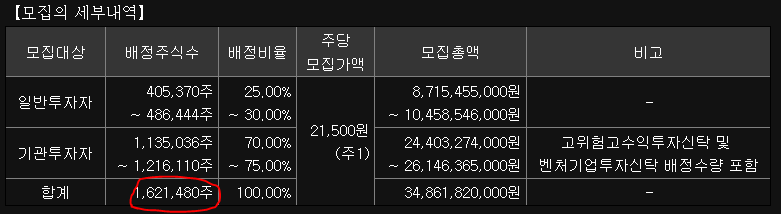 우선, 이번에 진행될 공모주 배정 주식 총수량을 볼까요.