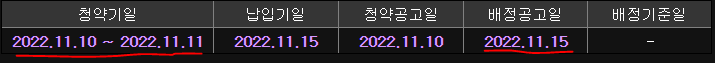 - 일반청약자 청약일 : 22.11.10 ~ 11.11일 (2일간) / 시간 : 10:00 ~16:00 / 납입기일 : 증거금 x (이런..)