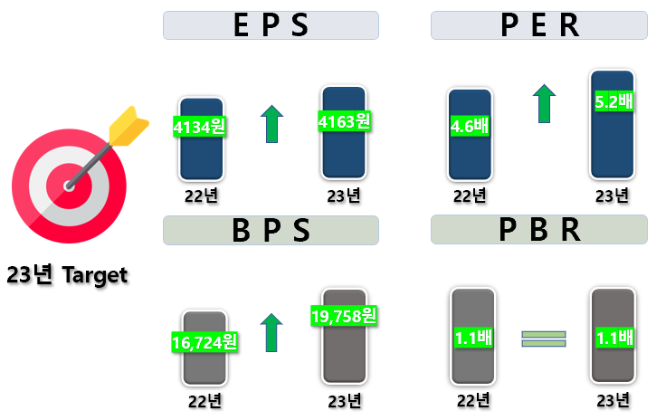 · EPS와 주가 역전. 21년 주식시장활황으로 EPS밑에 있지만,