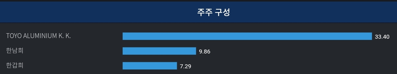 주요주주 : 최대주주가 일본 알루미늄회사 -> 완성차업체 도요타가 투자한 이유 있음.