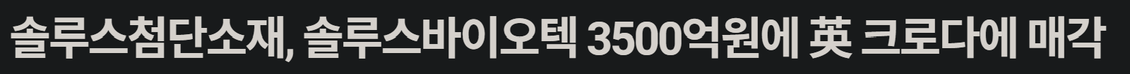 23.02.06 솔루스첨단소재 자회사 솔루스바이오텍 35000억원에 영국 크로다(Croda)에 매각. 21년까지 매출액 446억원을 낸 솔루스바이오텍을 영국 화학물질 제조판매업체한테 넘기게됨. 솔루스첨단소재의 최대주주는 사모펀드 스카이레이크이기 때문에 어느 정도 예상한 부분. 오히려, 동박 부분에 이번 매각으로 벌어들인 수익으로 투자할 수 있는 긍정적인 개인적 의견.