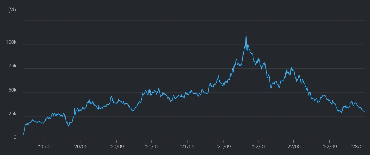 21년 주가 반등했지만, 이후 하락 후 횡보중 : 롯데가 인수한다고 하면 떨어지는 습성이 있음(ex : 일진머티리얼즈)