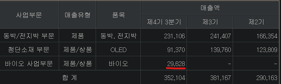 22.3분기 실적부터 바이오부문 실적이 따로 공시되기 시작했죠.