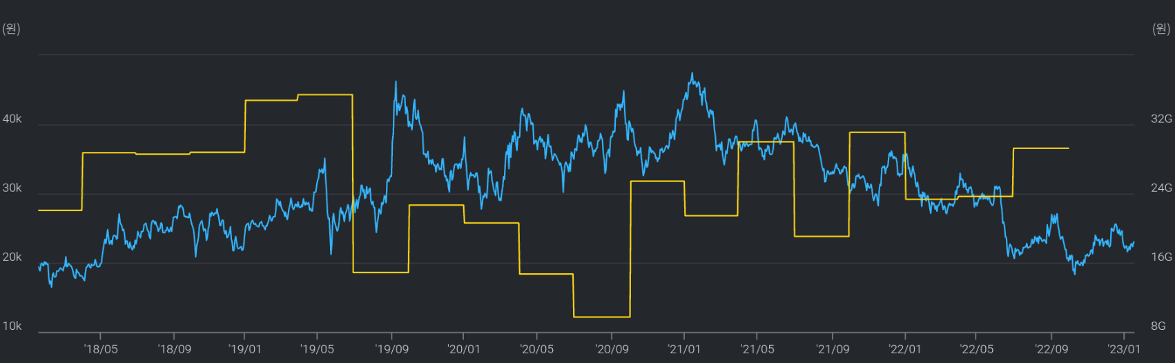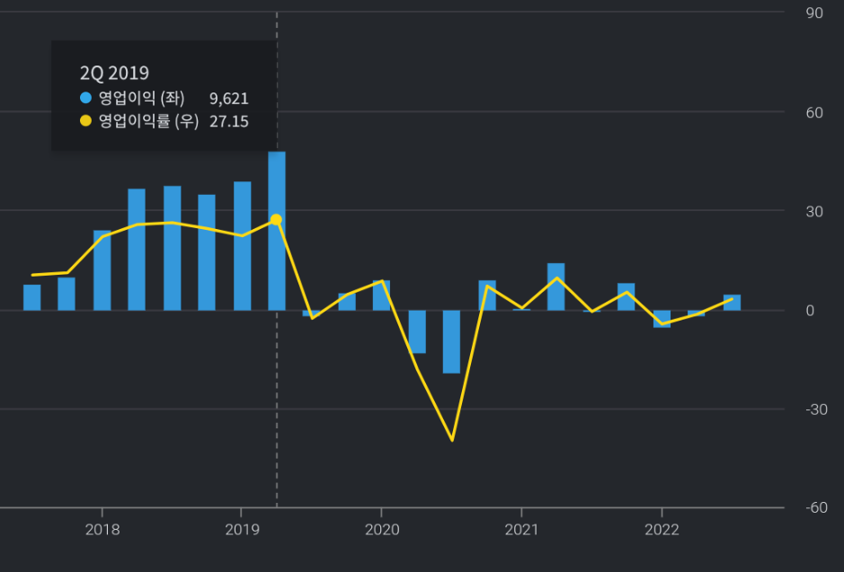 19년 27%에 달하던 영업이익률 감소(현재 2~3%대)