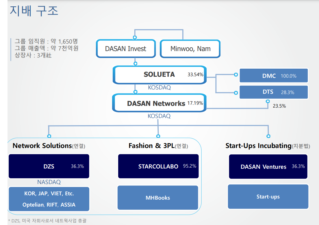 주요 종속회사: 미국법인 DZS Inc(나스닥), DASAN Network Solutions, Inc, (주)다산네트웍솔루션즈