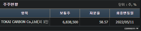 주주구성(23.12월 기준) : TOKAI CARBON CO.에서 흑연 전량을 수입(엔화로 결제)