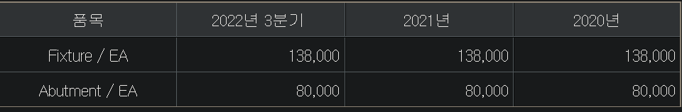 의료시장의 가장 큰 장점은 원재료비용이 낮다는 것이죠. 임플란트도 마찬가지입니다. 임플란트가 23년기준으로 120~150만원대에 형성되어있는데요. 원재료 가격이 218,000원 밖에 안돼요. 고정체+상부체 다 합쳐도 말이죠. 80% 이상이 행위료로 나가는 것이기 때문에 치과의사들도 수익성이 좋아서 하고 덴티움 같이 납품 하는 업체들도 그만큼 수요가 늘어나니 수익성 증대로 이어질 수 밖에 없습니다.