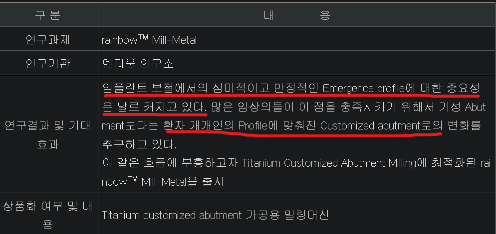 참고로 덴티움은 국책과제로 3D프린팅으로 금속치근과 세라믹 크라운을 제작하는 연구를 하고 있다고 합니다.