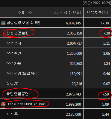 최대주주 : 국민연금이 최대주주 같지만, 삼성가가 합체하면 다르다