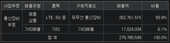 1998년 설립하여, 유/무선 통신장비사업을 하고 있구요, 상세하게는 기지국에서 발생하는 전파가 닿지 않는 곳의 신호를 커버하기 위한 장비들로, 인빌딩 중계기의 DAS(Distributed Antenna System, 분산형안테나시스템)가 주력이에요. 국내의 경우 주요 이동통신 3사 SKT, KT, LGU+와, 국방 사업 영역인 한화시스템을 주요 고객으로 두고 있어요. 하지만 국내는 이미 5G를 무리없이 사용하고 있죠? 그 말은 즉 5G장비 공급이 성숙단계에 들어섰다고 생각할 수 있겠내요.