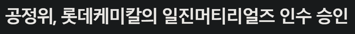 (23.01.11일) 공정위 롯데케미칼 지주사인 '롯데 배터리 머티리얼즈 유에스에이' 일진머티리얼즈 인수 승인.