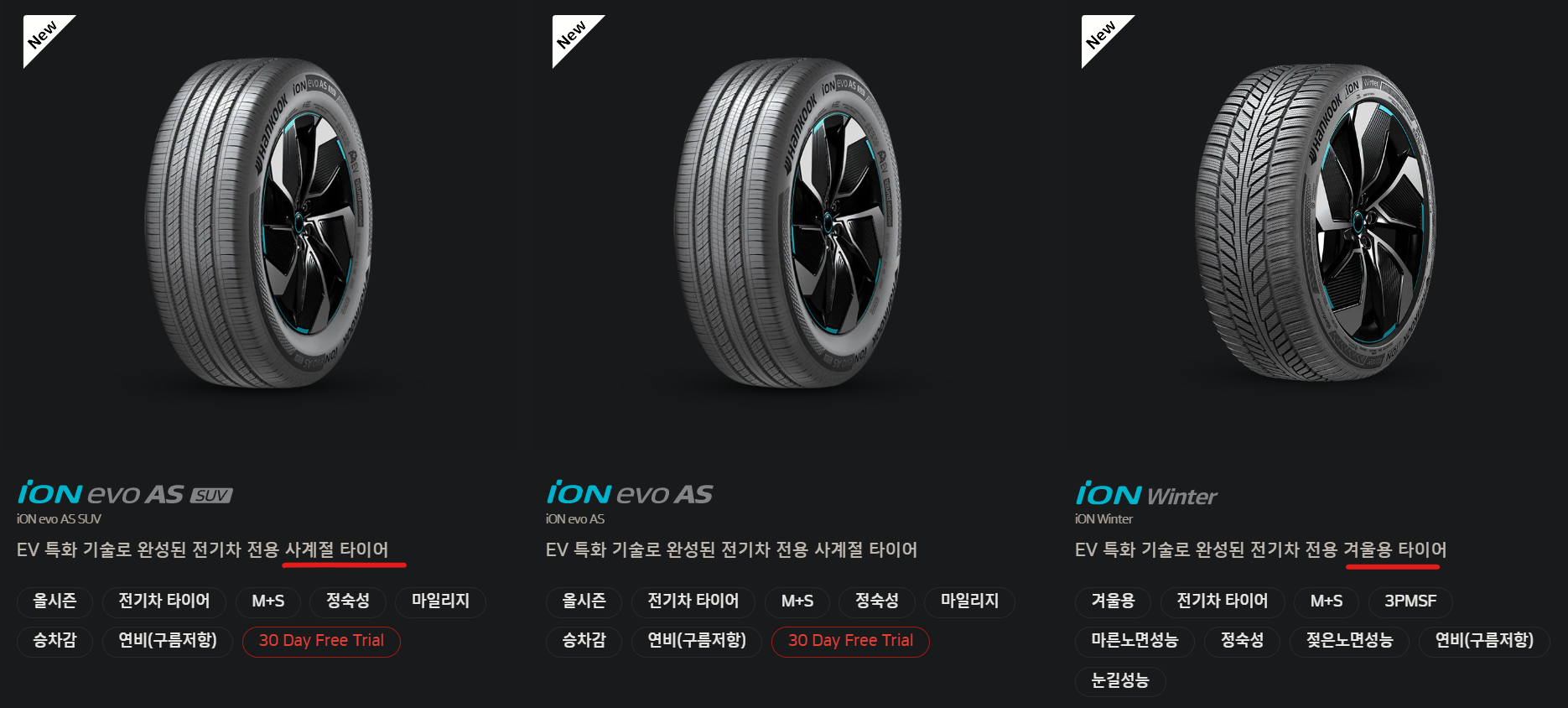 한국타이어앤테크놀로지는 전기차전용(EV용) 타이어 브랜드도 새롭게 출시를 했어요. 브랜드명은 아이온(ION)입니다.