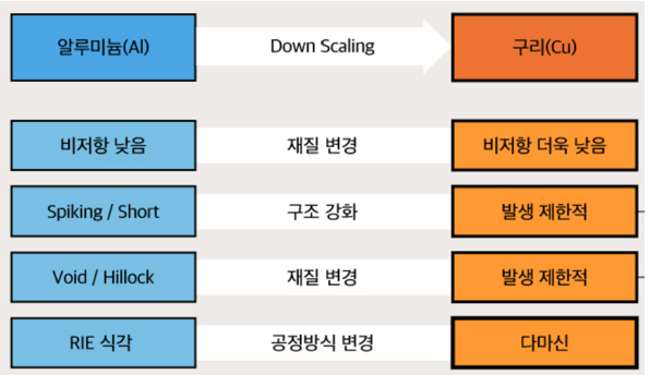 · 반도체 미세화로 금속배선도 미세화가 가능해야한다.