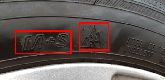 겨울용 타이어의 구분은 간단하게 확인 가능합니다. 타이어에 M+S를 찾으면 되는데요. M은 Mud(진흙), S는 Snow(눈)을 의미하기 때문에 누가봐도 겨울용이라는 것을 알 수 있습니다. 혹은, 산 그림 속 눈꽃 그림보면 더 쉽게 구분 할 수 있을겁니다.