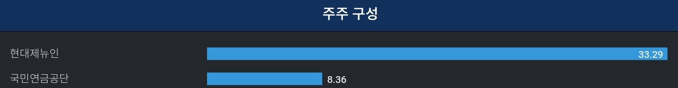 주주구성(22년 말 기준) : HD현대가 21년 8월 두산인프라를 인수후 현대제뉴인에 모든 주식 양도하여 현 최대주주는 현대제뉴인입니다.