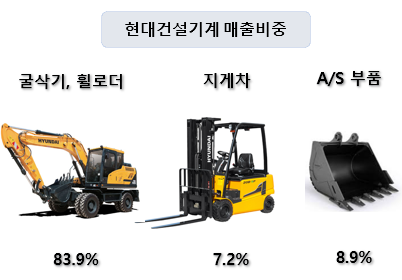 예를 들면, 굴삭기가 땅을 팔 때 무기역할을 하는 버켓(bucket)이 낡아진다면, 수리나 교체를 해야겠죠. 현대건설기계를 이용하는 사용자들 입장에서도 동사에서 나오는 순정품을 더 선호를 할 것이구요. 그렇기 때문에, 자연스레 A/S 부품사업도 함께 하고 있습니다.