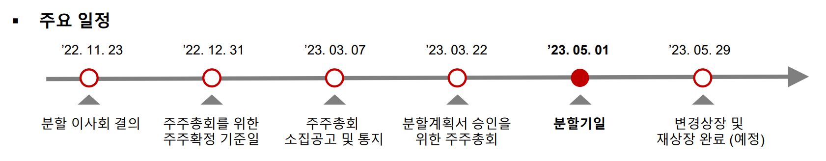 그러면, 언제 분할하고 재상장하는지 일정이 중요하겠죠.