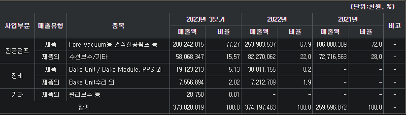건식진공펌프(93%), 열처리장비(7%, Bake Unit)