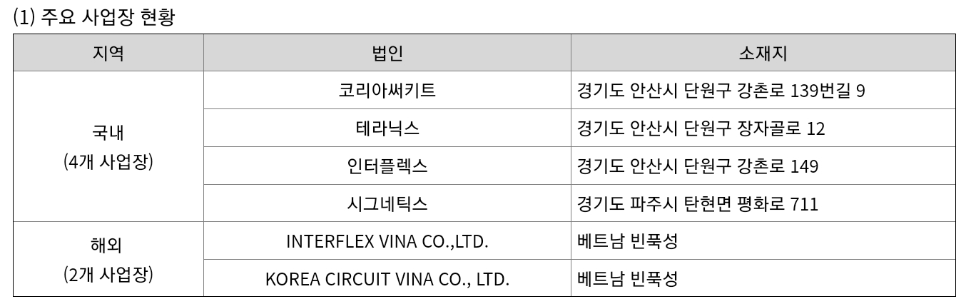 코리아써키트는 상장된 자회사들도 거느리고 있는데요. 테라닉스를 통해 PCB 제조사인 시그네틱스를 지배하고 있고요. FPCB 제조사인 인터플렉스는 코리아써키트가 직접 다스리고 있습니다. 참고로, 반도체 외관검사장비업체인 '인텍플러스'와 헷갈려하는 분들이 많으니 참고하세요.
