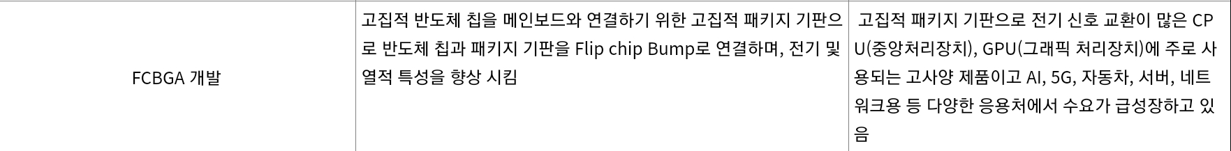 · 반도체부문(메모리, 비메모리) : FC-BGA, FC-CSP /