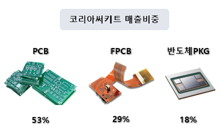 주요고객사로는 국내는 삼성전자, SK하이닉스, LG전자가 있고요. 해외에는 브로드컴, 온세미컨덕터, 사이프레스 등이 있습니다. 최근에는 ASP가 낮은 PCB제조에서 고부가제품인 FC(Flip Chip)계열의 BGA, CSP 생산을 증대하고 있습니다. 코리아써키트 본인 사업은 PCB제조에 특화되어 있지만, 자회사 테라닉스, 인터플렉스, 시그네틱스를 통해 ASP가 높은 FC-BGA를 시작으로 반도체패키징사업까지 사업포트폴리오가 다양화하고 있습니다.
