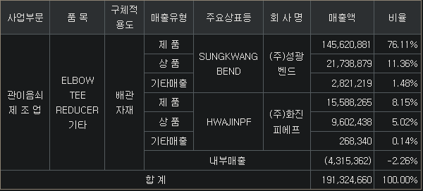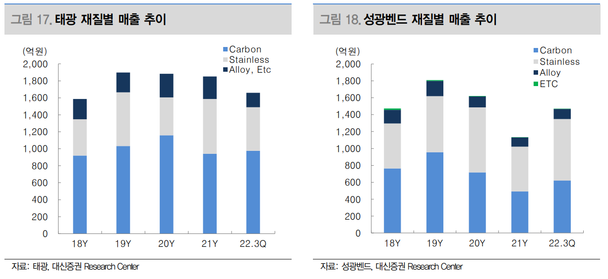 성광벤드의 경쟁사인 태광과의 피팅 재질별 매출비중도 참고용으로 삼아 투자아이디어를 얻길 바랍니다.