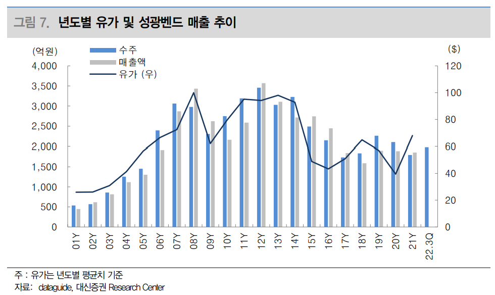 성광벤드는 정유, 석유화학, 해양플랜트, LNG 등에 쓰이는 배관 사이를 이어주는 피팅 부품을 만드는 업체입니다. 에너지 가격상승은 전방 에너지업체들의 Capex 증가 > EPC 발주 > 피팅 발주로 이어지는 산업구조를 갖고 있습니다. 에너지 사이클은 짧게는 3년 길게는 10년의 장기간 사이클을 지니고 있으며, 현재(23년)기준으로 21년부터 에너지자립 증가로 호황사이클을 맞이하고 있습니다. 미국(셰일), 유럽(해양플랜트), 중동(육상플랜트)가 주요 핵심 전방모멘텀입니다. 경쟁사인 태광이 중동 및 아시아향이 높다면, 동사는 북미향 매출 비중이 높다는 차이점이 있습니다. 성광벤드는 용접용 피팅 전량 국내 생산을 하고 수출비중이 높다는 특징이 있습니다.
