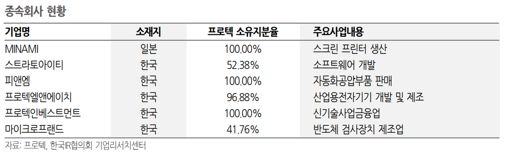 프로텍은 반도체후공정 장비를 만드는 업체에요. 흔히, OSAT(OutSourcing Assembly & Test)업체라고 부르죠. 반도체의 전공정에서의 미세화 속도가 더뎌지자 자연스레 후공정이 주목을 받고 있습니다. 프로텍의 주력 장비는 디스펜서입니다. 기존에 칩과 기판을 와이어, 리드프레임으로 이었었다면, 최근에는 FC-BGA(Ball Grid Array) 처럼 작은 공모양의 숄더볼들이 연결매체가 되고 있죠. 범프라고도 부르는 이러한 볼들이 점점 미세해지고 조밀해지자 이러한 범프들의 불량여부를 검사해주는 검사장비 및 디스펜서 장비의 수요가 증가하고 있는 추세입니다.