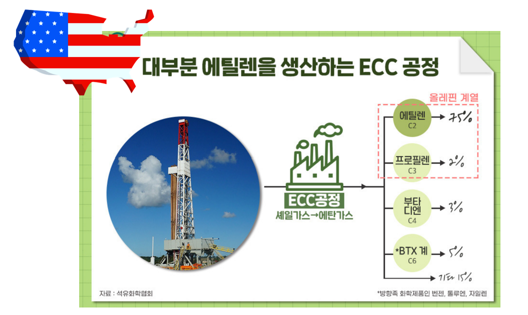 미국도 저렴한 셰일가스로 석유화학제품들을 만들기 시작했어요. NCC가 아닌 ECC 방법으로요.