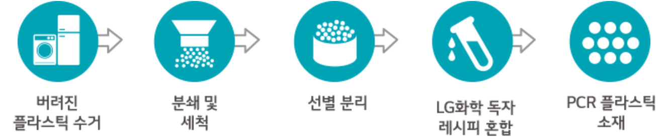 위 그림을 보면 버려진 플라스틱을 수거해서 기계장비를 이용하여 분쇄하고 세척하는 것이 주된 방법인 것을 알 수 있어요. 또한, 마지막에 'PCR 플라스틱'이라고 적혀있는데요. 참고로, 코로나 때 받은 그 PCR은 아니에요. 바이오 플라스틱에서 PCR이란 Post-Consumer Recycled material의 약자로, 한 마디로 최종 소비자에 의해 사용된 플라스틱을 재활용하여 만든 플라스틱 소재라는 것입니다. 즉, 버려졌던 플라스틱을 다시 살려냈다는 것이죠.
