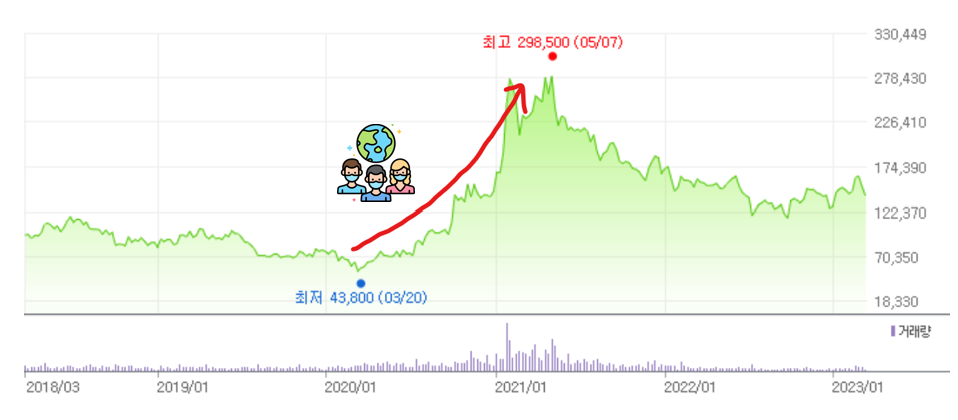 SBR가격 하락을 오히려 원재료인 BD, SM가격의 수직하락이 지켜준 셈인데요. 그리고, SBR가격이 급등하는 것을 볼 수 있습니다. 이때, 코로나 걸리지않으려면 손이 청결해야한다며 의료, 음식점 등 산업 가리지않고 너도나도 라텍스 장갑을 꼈거든요.