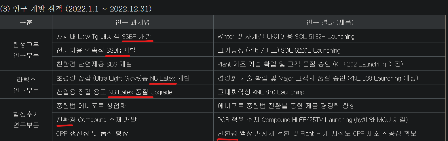 개인적으로 금호석유의 연구실적과 연구계획을 보면 동사의 현상황과 미래비전이 보인다고 생각을 하는데요. 같이 몇 개만 살펴볼까요.