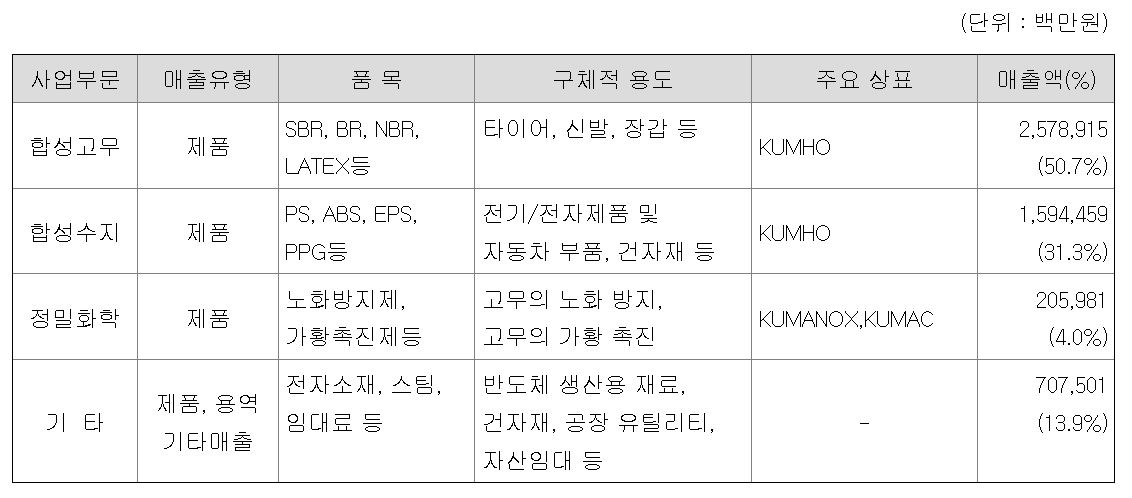· 합성고무 : BR, SBR, NB-Latex / 내수 18%, 수출 82%