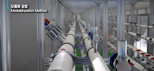 한양이엔지는 사업부문을 하이테크 BU, EPC BU, CCSS BU로 나누고 있어요. 하이테크BU는 초고순도물(UHP, Ultra High Purity) 파이프 작업이구요. EPC BU는 산업용 가스, 폐수처리, 항공기 연료용 가스 배관등을 하는 일입니다. CCSS BU는 Central Chemical Supply System의 약자로 중앙화학약품 공급 파이프를 뜻해요. 뭔가 되게 많이 하는 것 같지만, 공통 분모가 있는데요. 바로 '파이프'를 만든다는 것입니다. 그냥 만드는 것은 아니고요. EPC로 설계-구매-시공&시운전까지 모두 하는 것이죠. 최근에는 이러한 파이프를 모듈화공법으로 집에서 제작해서 현장에서 설치하는 전략으로 사업을 펼치고 있습니다.