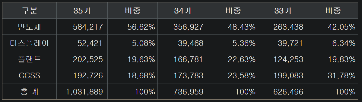 · 하이테크 BU : UHP(Ultra High Purity) Piping(배관 및 기계설비) / 한국89%, 중국6.3%, 베트남3.5%