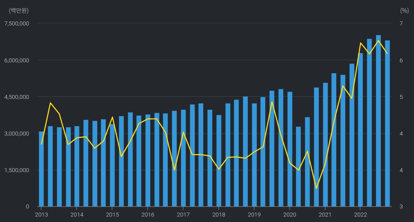 매출액 꾸준히 우상향 중 + 영업이익률이 6%를 뚫은 것은 주목할 만한 점.