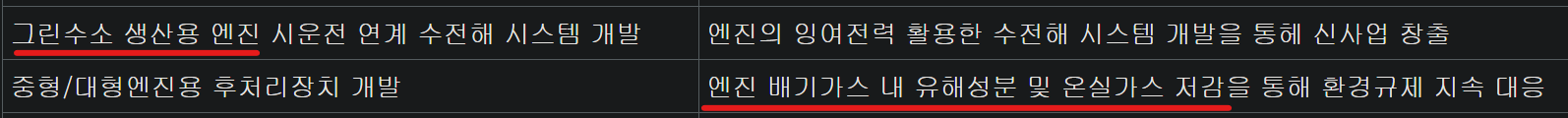 앞서 DF엔진을 설명하면서 친환경바람이 엔진시장에서도 중요해지고 있다고 했는데요. 엔진의 잉여전력을 갖고 수전해를 하는 것을 알 수 있습니다. 수전해를 통해 그린수소를 생상하는 것이죠. 참고로, 그레이수소, 블루수소, 그레이수소에 대한 이해는 '수소 한방에 끝내기'에 올려놨습니다. 그리고, 최근 엔진에도 스크러버 같은 유해가스를 차단하는 장비들이 들어서고 있는데요. 연구개발을 보면 유해성분 저감용 엔진 개발을 하고 있다는 것을 확인할 수 있습니다.