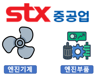 STX중공업은 선박용 엔진, 발전용 엔진, 엔진부품 사업을 영위하고 있습니다. 선박은 대형선박 위주로 하고 있으며, 대형엔진(저속엔진)을 주력으로 만들고 있어요. 저속엔진은 덴마크 기업인 'Man Energy & Solution'의 기술 라이센스에 로열티를 지불하면서 만들고 있습니다. 육상 발전소용 엔진, 엔진부품도 납품하고 있어요. 최근에 친환경 연료엔진의 추세화로 동사는 DF(Dual Fuel)엔진 개발에 성공했고, 특히, 위 덴마크 기업인 Man-ES와 합작하여 LPG를 이용한 DF엔진 을 양산할 수 있는 능력을 갖추게 되었습니다.