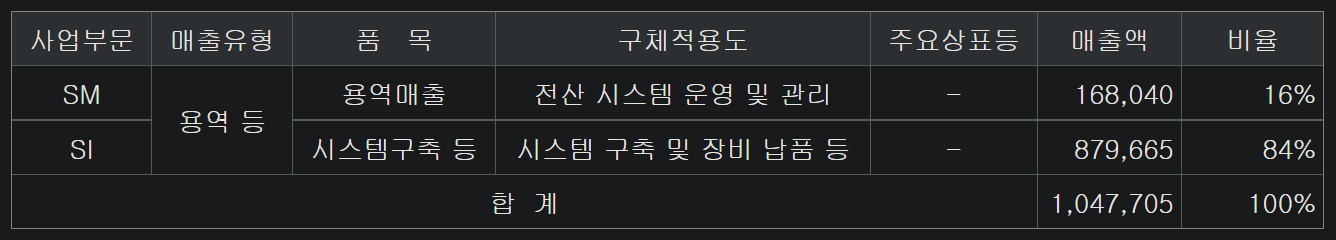 · SI(System Integration) : IT인프라 구축, 전기차 충전소(자회사 중앙제어), 메타버스(자회사 칼리버스CALIVERSE)