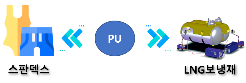 PU (Polyurethane, 폴리우레탄)은 PU의 발포(發泡, 거품을 냄) 여부에 따라 Foam계열의 PU와 Non-Foam계열의 PU로 나뉘는데요. Foam계열의 PU는 FOAM단열재, 인조목재, 스폰지, 자동차 내장재 등으로 쓰이고 있어요. 거품이 난다는 것은 구멍이 나있어 공기가 통한다는 것이기 때문에, 스펀지, 자동차 내장재(공기순환) 등에 쓰이는 것이죠. Non-Foam계열의 PU는 코팅제, 접착제, 실란트, 엘라스토머 등으로 쓰이고 있습니다. 구멍없이 단단히 매꿔야하는 실란트, 코팅제 같은 곳에 사용되는 것이죠.