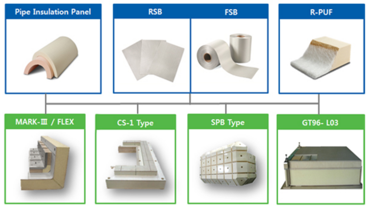 · LNG보냉재 : LNG선 연료탱크, 육상 가스탱크, LNG파이프 등/ 주요고객사 : 현대중공업, 삼성중공업, 현대삼호중공업