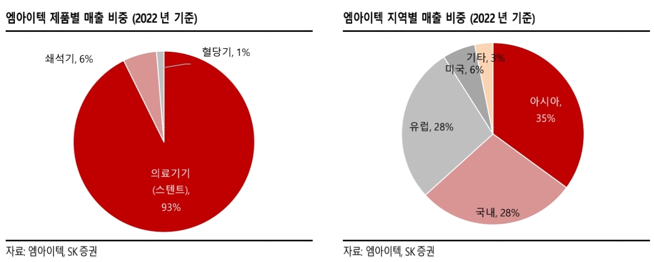 엠아이텍은 비혈관용 스텐트(Stent, 소화, 비뇨, 호흡기관 뚫어줌), 체외 충격파 쇄석기(신장, 요로 결석 충격파로 제거), 혈당측정기를 생산 및 판매하는 업체에요(+후지필름 내시경장비 유통). 특히, 고령화, 암환자가 늘어나면서 스텐트 사용량이 많아졌는데요. 스텐트는 혈관, 위장관 등에 플라크(Plaque, 불순물)가 쌓여있을 때, 이를 뚫어줘서(풍선, 우산 방식) 정상적으로 재기능을 할 수 있게 돕는 역할을 합니다. 외과적 수술이 필요치 않고 시술차원으로 시행이 되기 때문에, 안전성과 편리성으로 주목받고 있어요. 또한, 엠아이텍은 스텐트가 체내에서 자연적으로 분해될 수 있는 생분해성 스텐트도 R&D 개발 중에 있습니다.