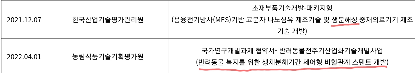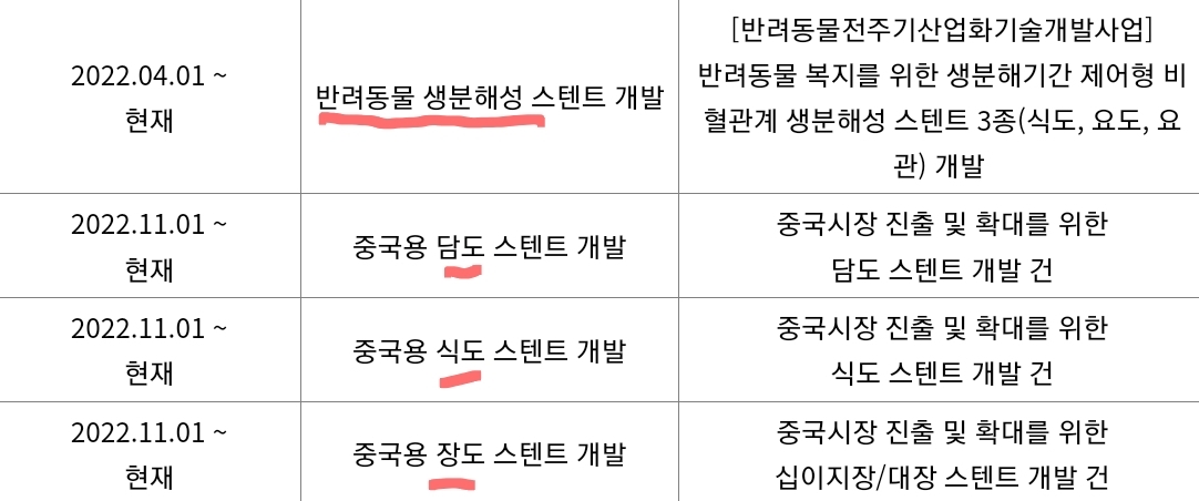 앞서 언급했듯, 엠아이텍은 생분해성 스텐트를 연구개발 중이라고 했죠. 산업통상자원부의 지원을 받아 학계와 연구개발 중인 것을 아래 R&D를 통해 확인할 수 있습니다. 또한, 1인가구가 늘면서 외로움을 달래려고 반려동물 수요가 증가하고 있는데요. 혈관, 소화기관은 인간만이 가진 것이 아니죠. 그래서, 반려동물용 비혈관 스텐트형을 개발하고 있는 것을 알 수 있어요. 이 역시도 생체분해형으로 나와있네요.