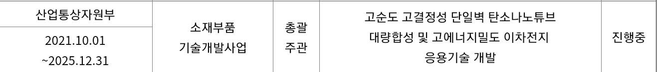 제이오는 양극재용으로 다중벽(MWCNT), 음극재용으로소수벽(TWCNT)을 생산하고 있죠. 무엇보다 러시아 CNT도전재 업체 옥시알이 만들고 있는 'SWCNT'로 가는 것이 최종 목표점일텐데요. 아래 R&D를 보면, 단일벽 탄소나노튜브의 대량합성이라고 나와있는데요. 25년까지 산업통상자원부와 협력하여 SWCNT를 개발하려고 투자하고 있는 것을 확인할 수 있습니다.