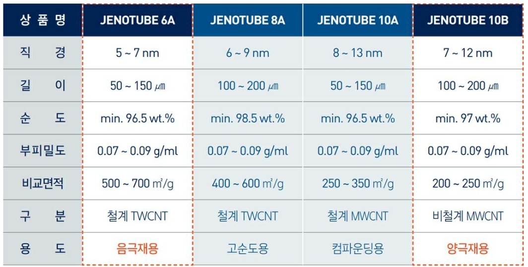 * 비철계 CNT : 제이오는 MWCNT에 철계(철, 아연, 구리, 니켈 등)을 넣지않아 이차전지 폭발위험성 감소