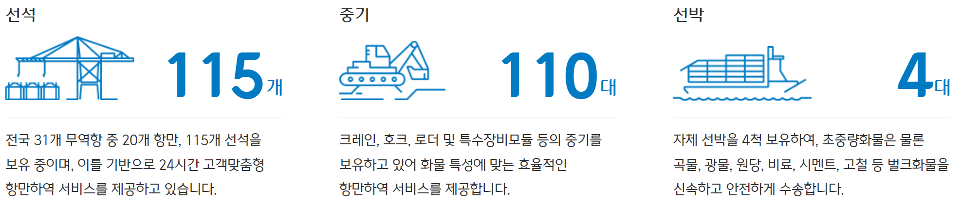 정부에게 부두운영권을 승인받아 사업을 하고 있는 것을 P&D 사업이라고 하는데요. P&D는 Port & Delivery의 약자입니다. Port는 말 그대로 항구라는 뜻이죠. 항구에서 선석이라는 기기를 이용하여 하역을 하는데요.선석(Berth)은 선박에서 하역을 할 때 사람손으로 옮기기 힘든 물건들을 크레인 처럼 옮겨주는 역할을 하는 것입니다.